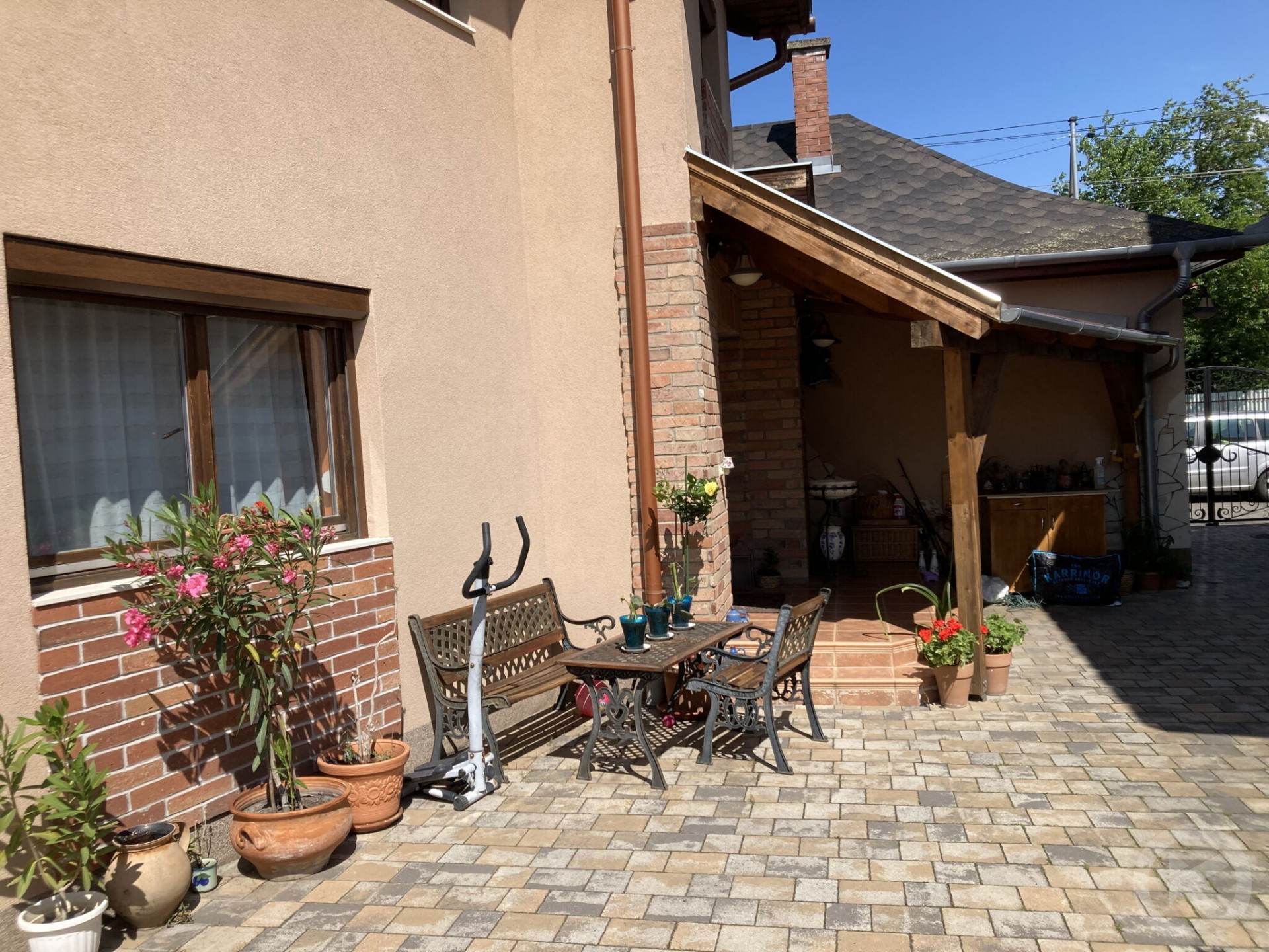 Built in 2008 in a Mediterranean style, the apartment house offers accommodation on two levels. The upstairs apartment (35 m²) has a balcony, while the ground-floor apartment (32 m²) features a terrace, both with separate entrances and private bathrooms. Each apartment consists of a bedroom, living room, kitchenette, and bathroom, furnished with modern amenities and a welcoming ambiance. The property is semi-detached, ensuring privacy. The garden and sun terrace are shared, but the terraces are exclusively reserved for the respective apartment guests.
