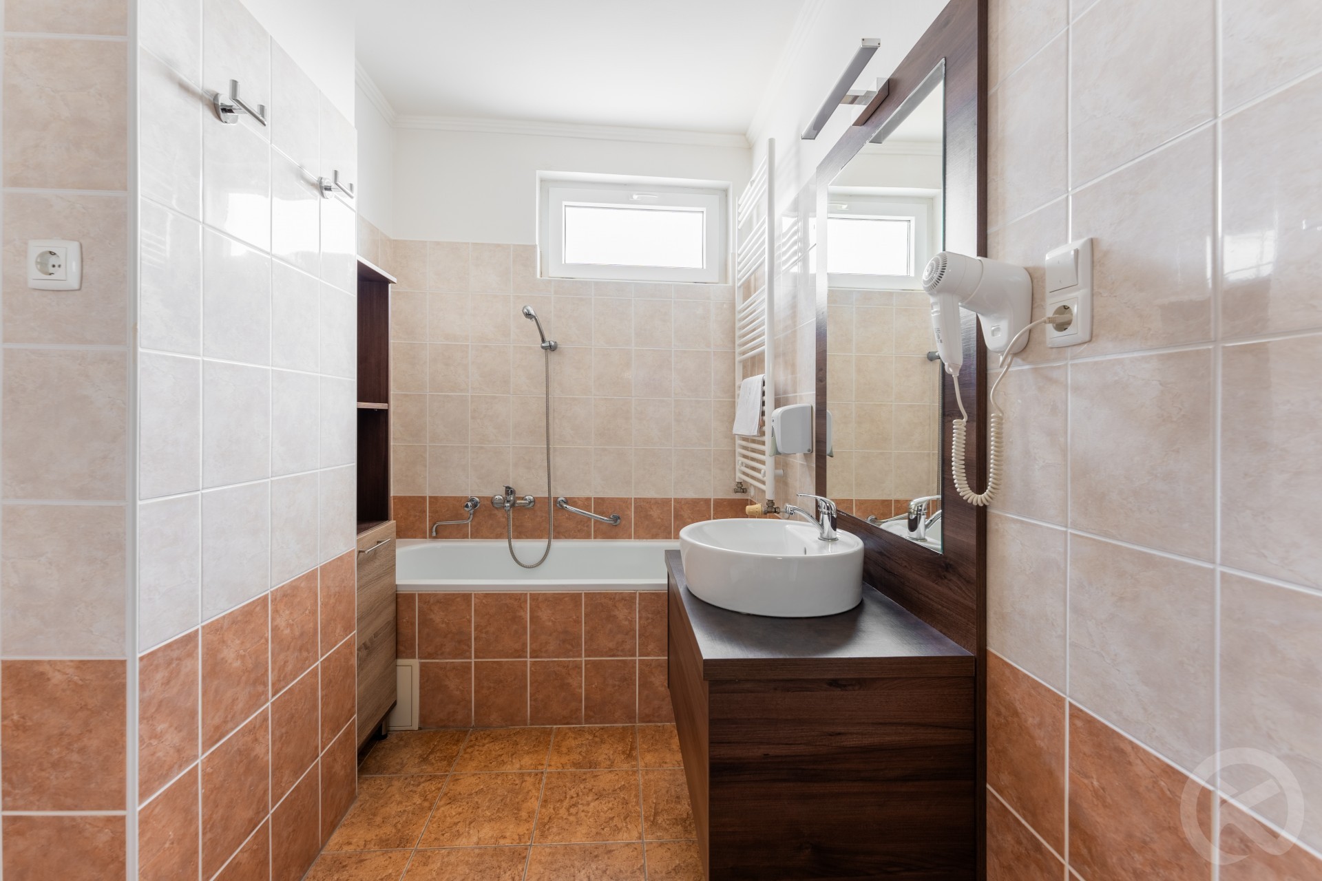 Bathroom: Private thermal water tap, hairdryer, towels.